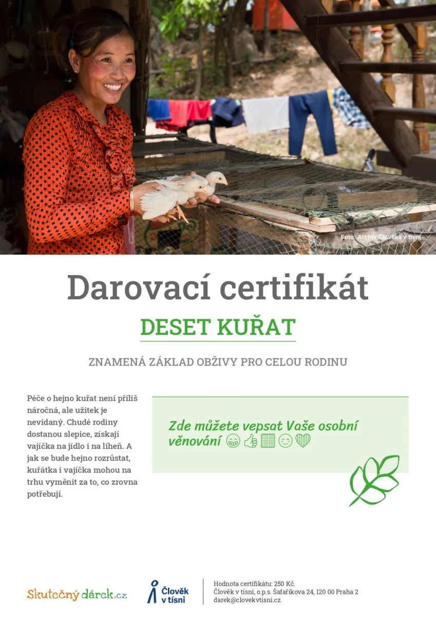 Váš dar pomůže těm nejpotřebnějším. Navíc získáte certifikát, který můžete využít jako dárek.