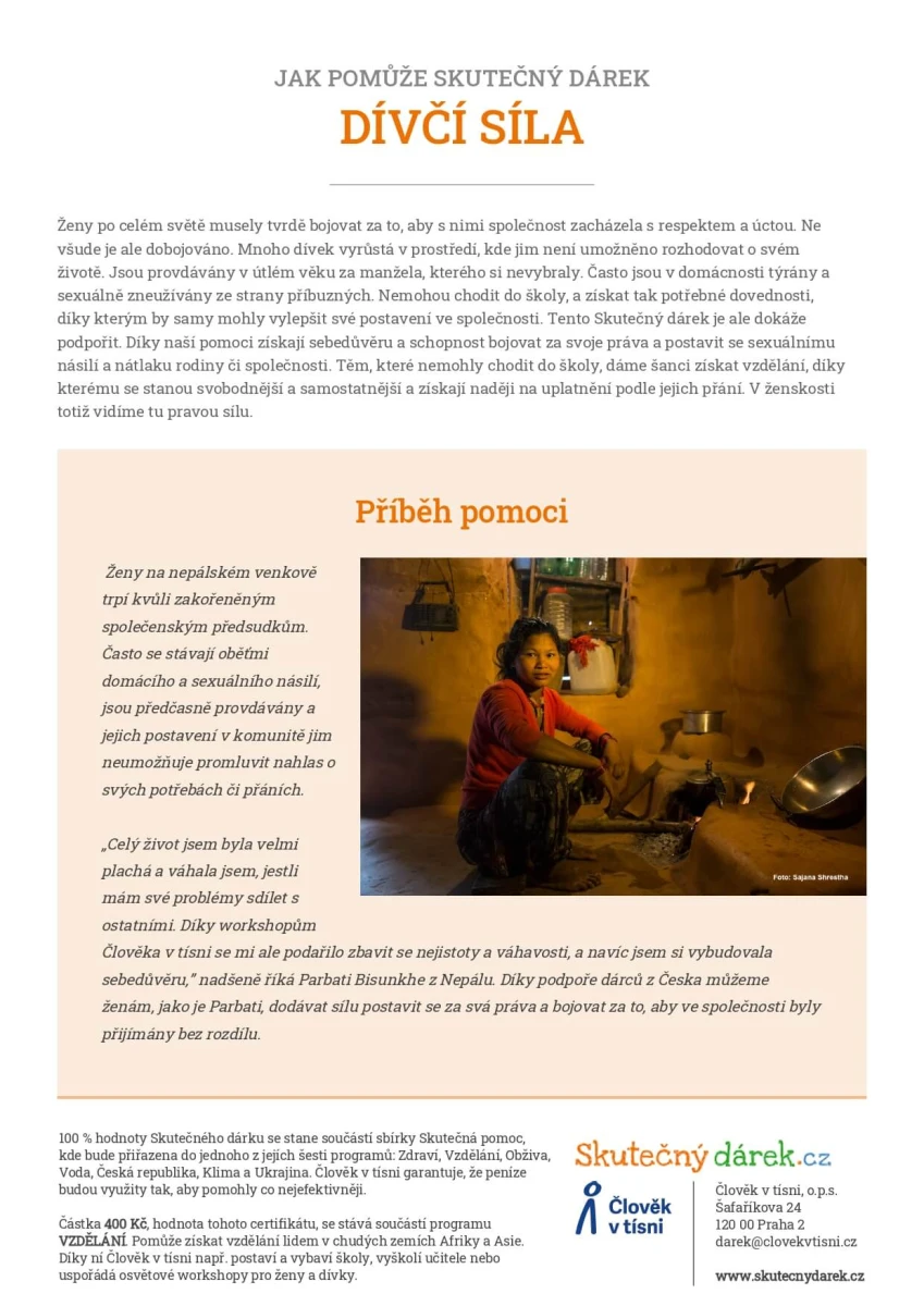 Nákupem tohoto darovacího certifikátu přispějete na program pomoci VZDĚLÁNÍ v rámci sbírky Skutečná pomoc.