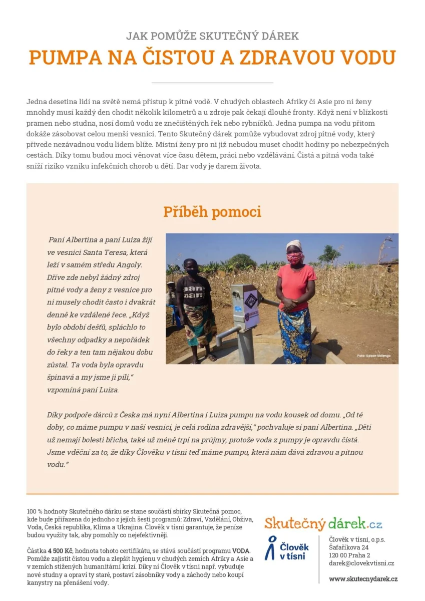 Váš dar pomůže těm nejpotřebnějším. Navíc získáte certifikát, který můžete využít jako dárek.
