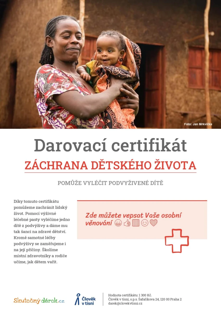 Váš dar pomůže těm nejpotřebnějším. Navíc získáte certifikát, který můžete využít jako dárek.